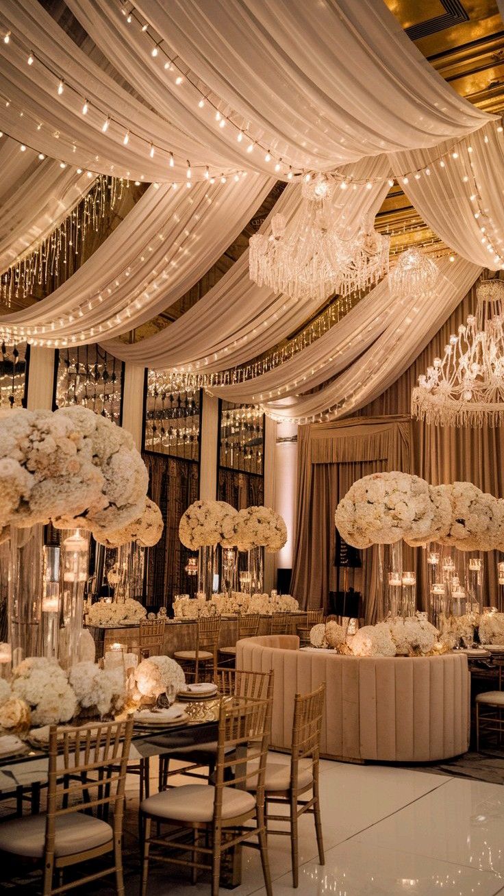 The design, inspired by Trump’s Mar-a-Lago ballroom, features gold trim and classical architecture.